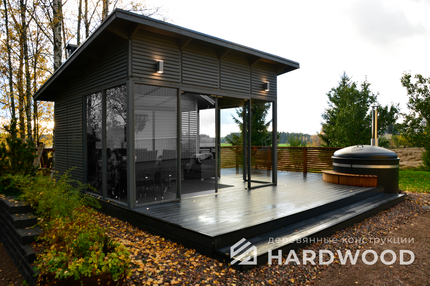 Все элементы постройки окрашиваются в 2 слоя с промежуточной и финишной шлифовкой. Стандартная краска Teknos Akrylin (цвет на выбор) по каталогу RAL Classic – более 1000 цветов. Масло, пропитка или другие производители красок – рассчитываются индивидуально